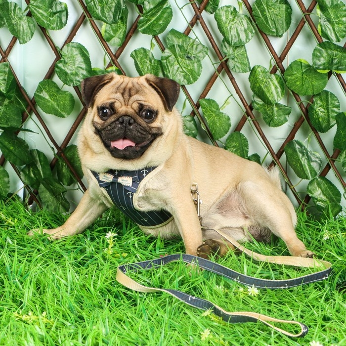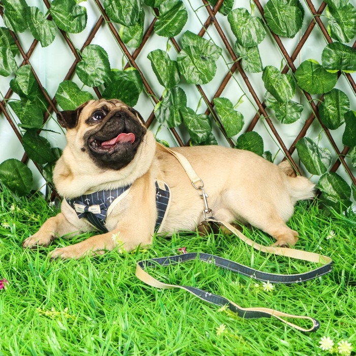 Стильный прогулочный комплект для собак "Якорь". Мягкая шлейка регулируется, поводок круглый прочный , ручка поводка не доставляет неудобств для вас при натежении. Шлея для собак 3 , 5 , 10 , 15 кг средних и мелких пород : шпица , бульдога , чихуахуа , йорка , мопс , такс и маленьких и больших кошек , котов типа мейн кун . Шлейка текстильная , регулируется металическим креплением. Поводок крепится к металлическому кольцу карабином. Шлейка исключит побег животного, если правильно подобрать размер и отрегулировать ремни.