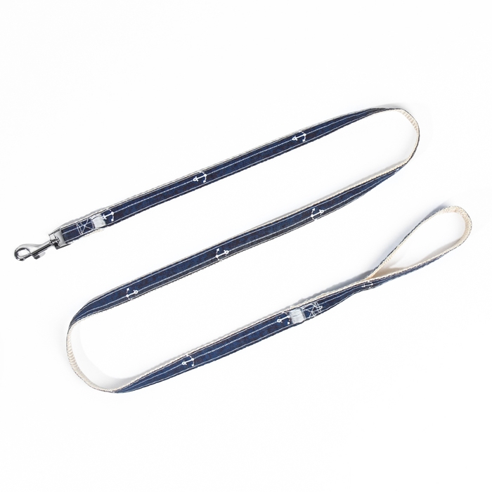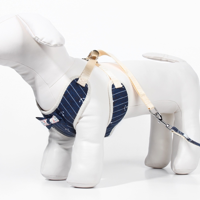 Комплект с мягкой шлейкой "Якорь", размер L, поводок 120 х 1,5 см, ОГ 42-76 см, синий
