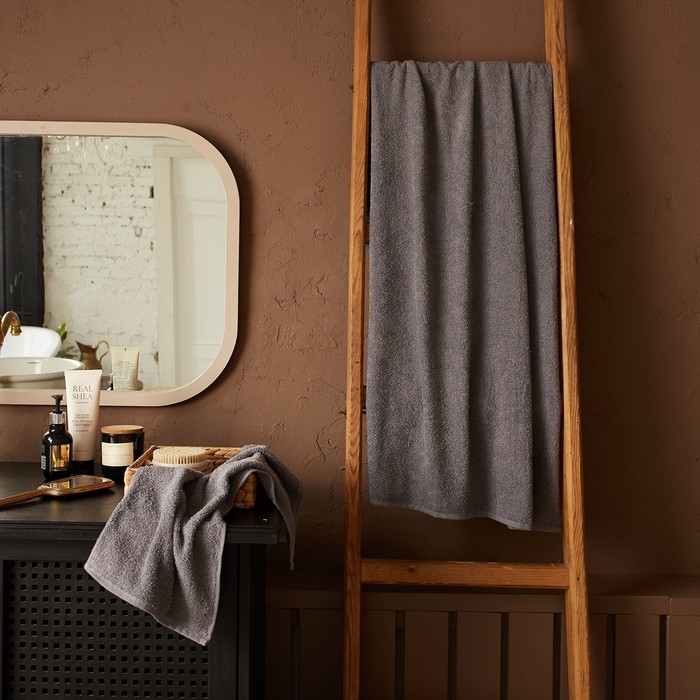 Полотенце махровое Экономь и Я 30х60 см, цвет серый, 100% хлопок, 350 гр/м2