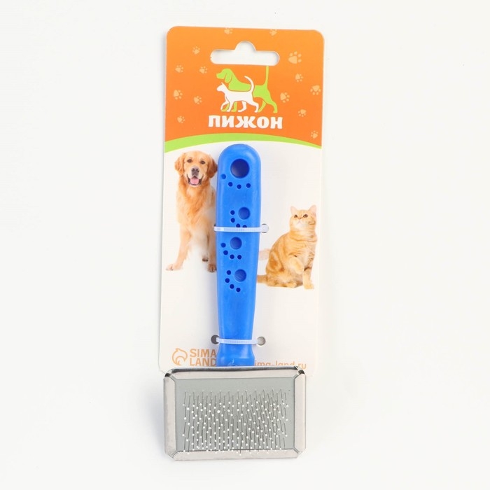 Изделие удобно лежит в руке и не причиняет дискомфорта животному при вычесывании.