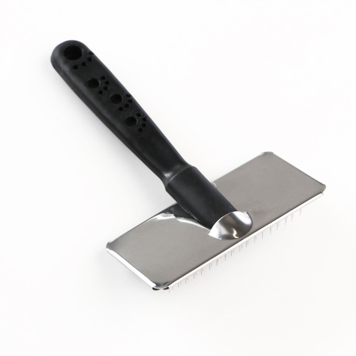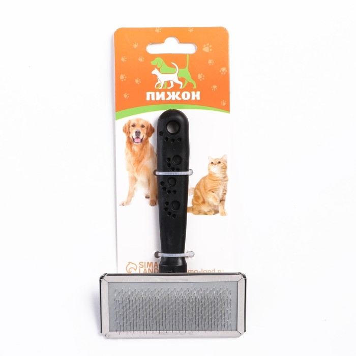 Изделие удобно лежит в руке и не причиняет дискомфорта животному при вычесывании.
