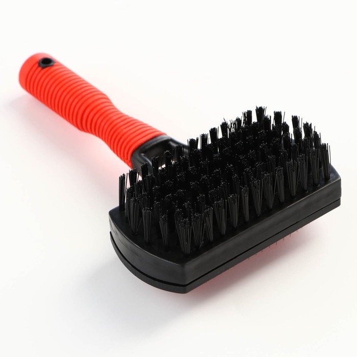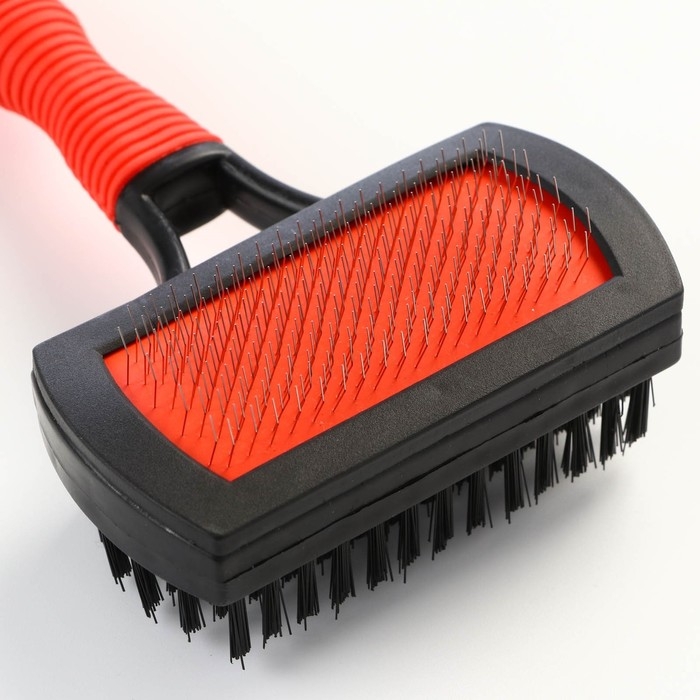 Двухсторонняя пуходёрка-щетка с резиновой ручкой 10 х 16,5 см, чёрно-красная