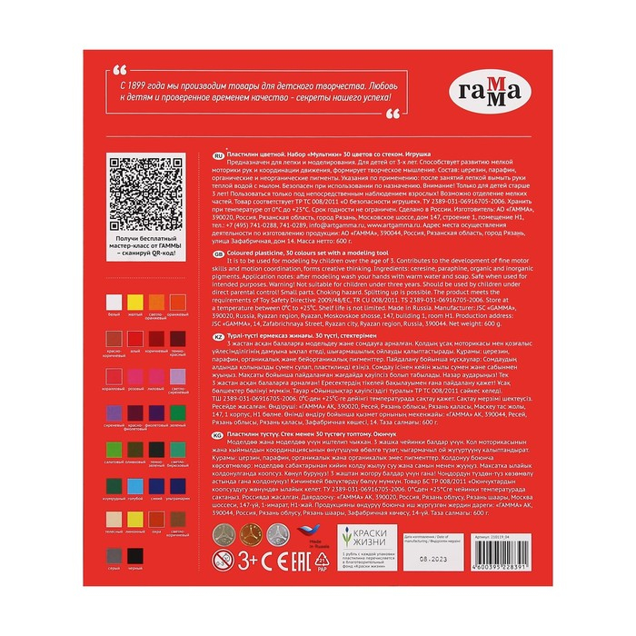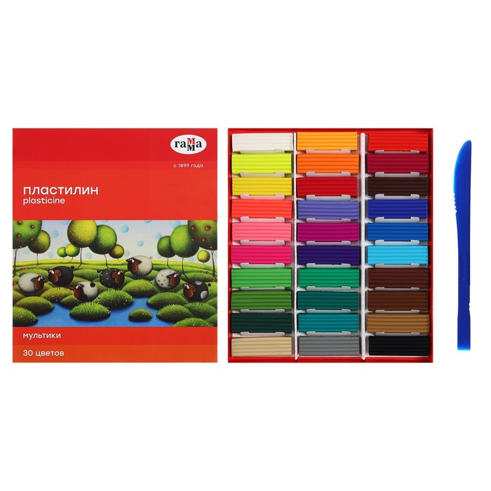 Пластилин 30 цветов 600 г, Гамма "Мультики", со стеком, картонная упаковка 210119_04