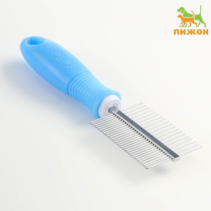 Расчёска "Комфорт" двухсторонняя, нескользящая ручка, 19,5 х 5,2 см, голубая