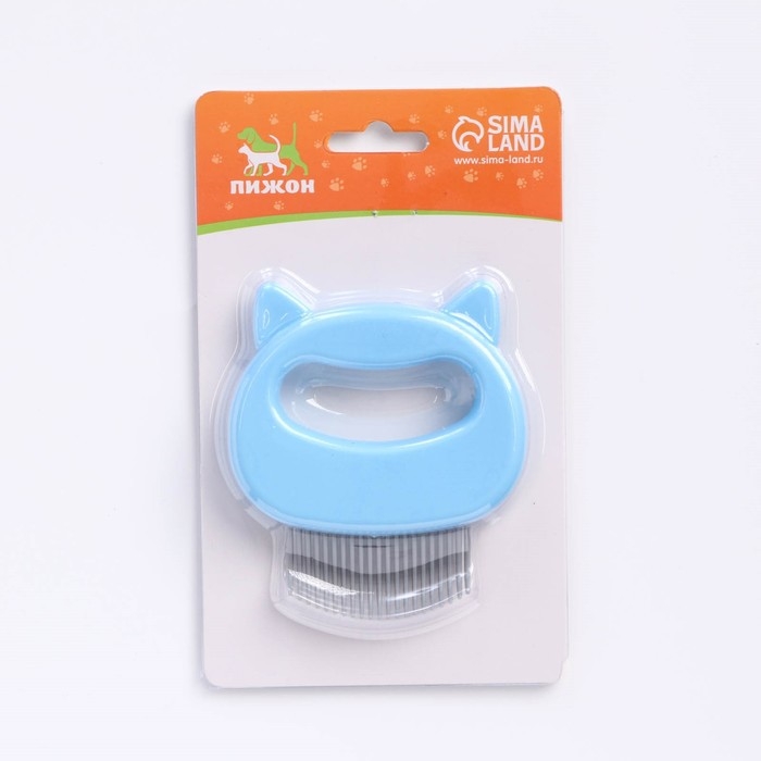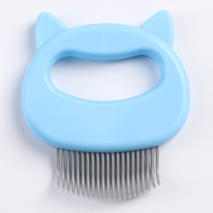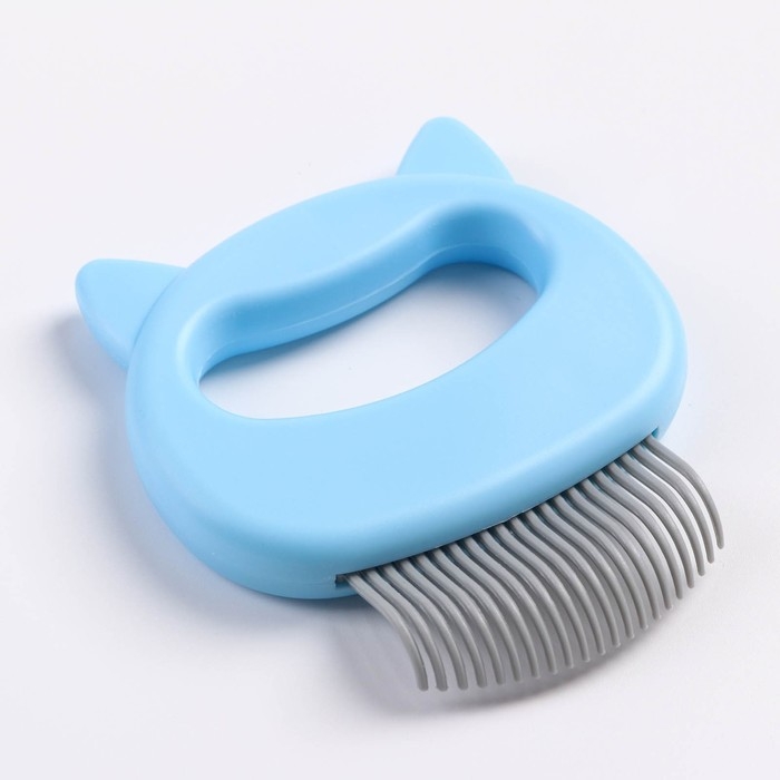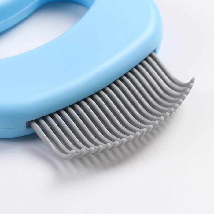 Расчёска для шерсти с загнутыми пластиковыми зубцами, 21 зубчик, 10 х 9 см, голубая