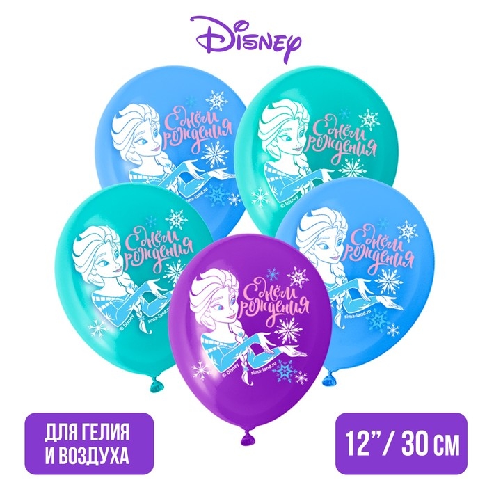 Шар воздушный "С Днем Рождения", 12 дюйм, латексный, 5 штук, Холодное Сердце