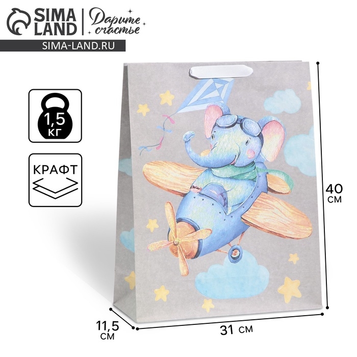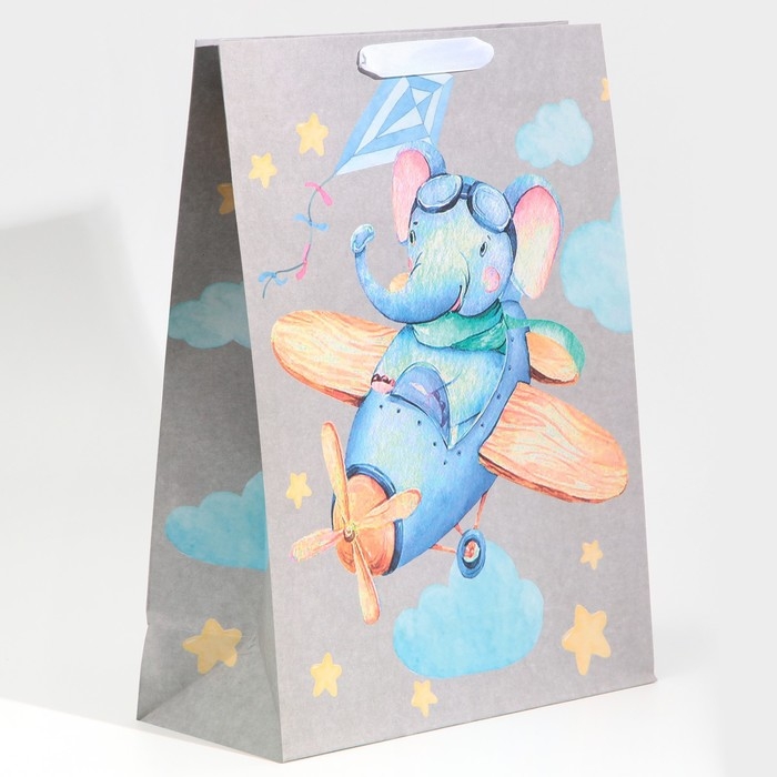 Пакет подарочный крафтовый вертикальный, упаковка, «Малышам», L 31 х 40 х 11,5 см