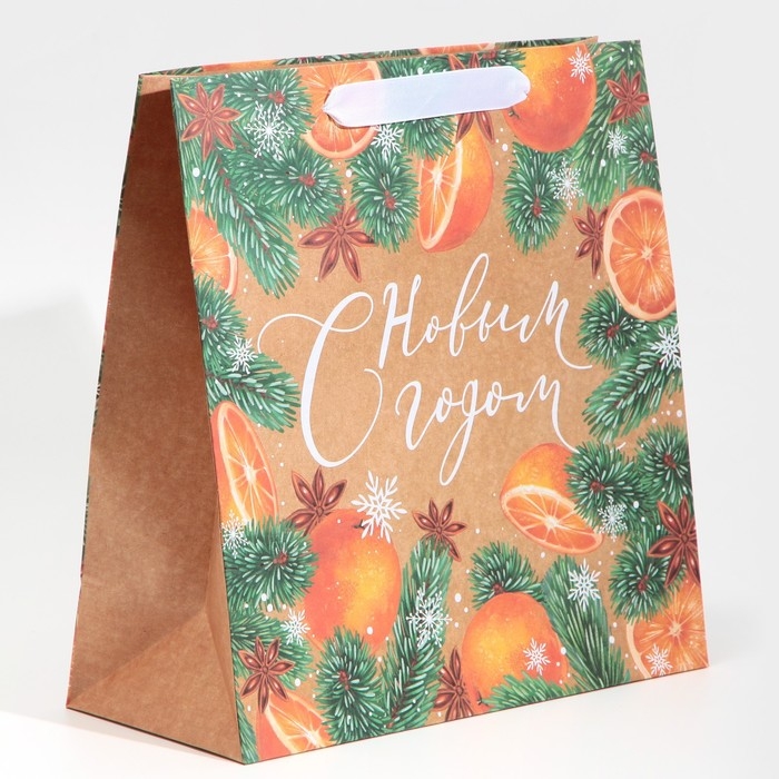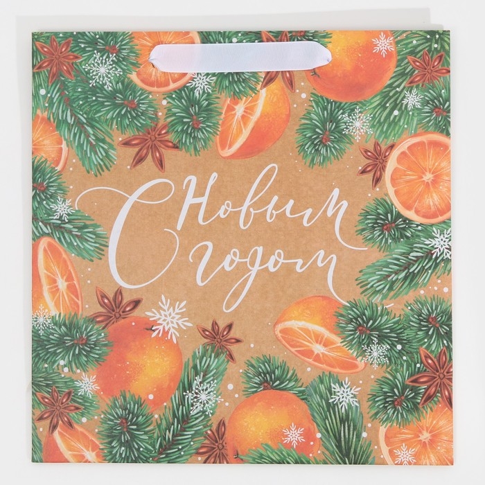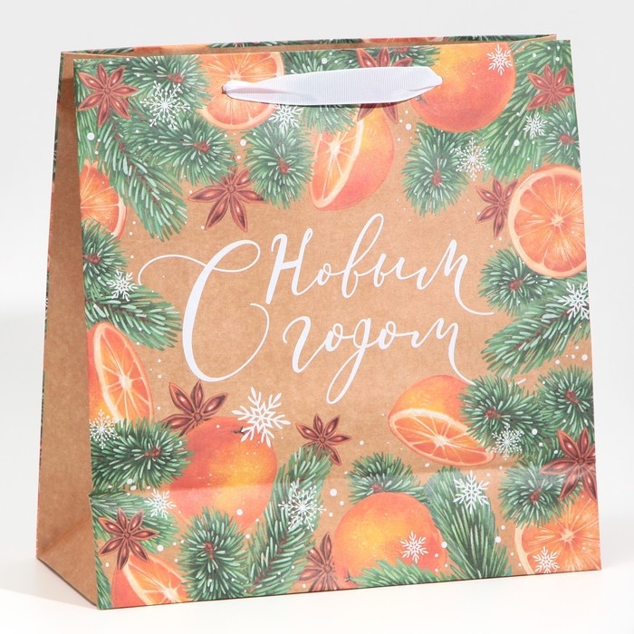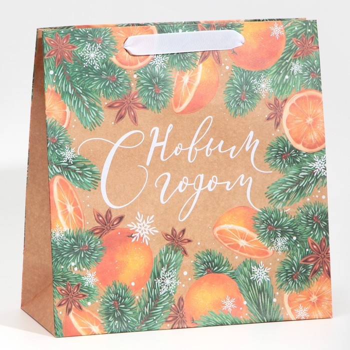 Пакет подарочный новогодний крафтовый квадратный «С Новым годом», 30 х 30 х 12 см, Новый год
