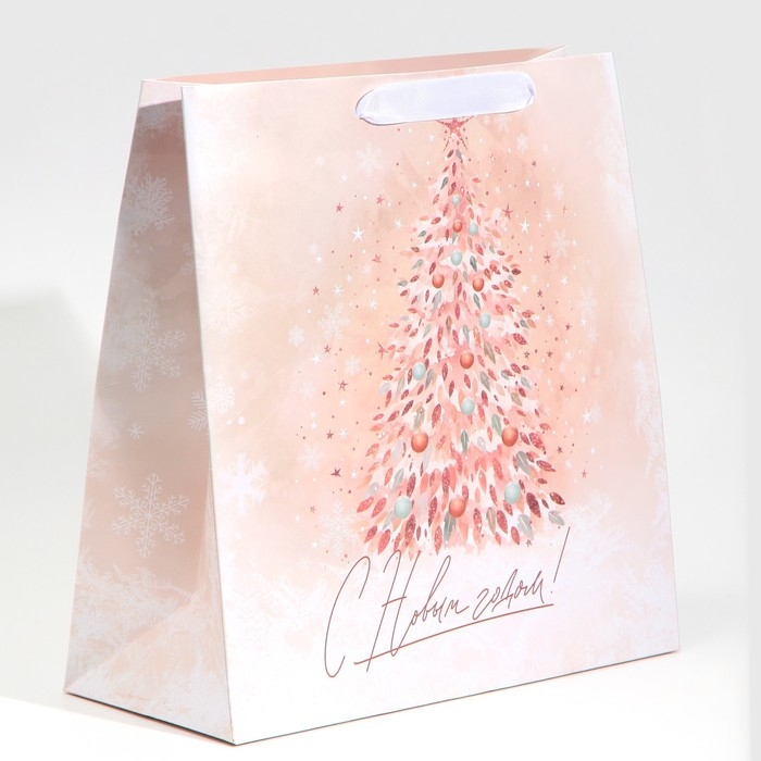 Пакет подарочный новогодний ламинированный квадратный «Pink», 30 х 30 х 12 см, Новый год