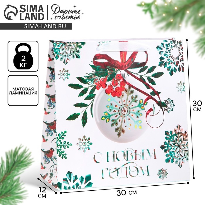 Пакет подарочный новогодний ламинированный квадратный «Forest», 30 х 30 х 12 см, Новый год