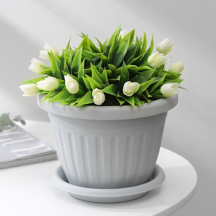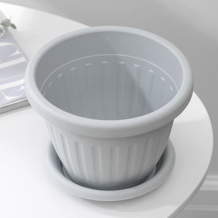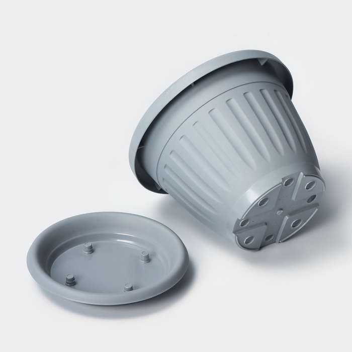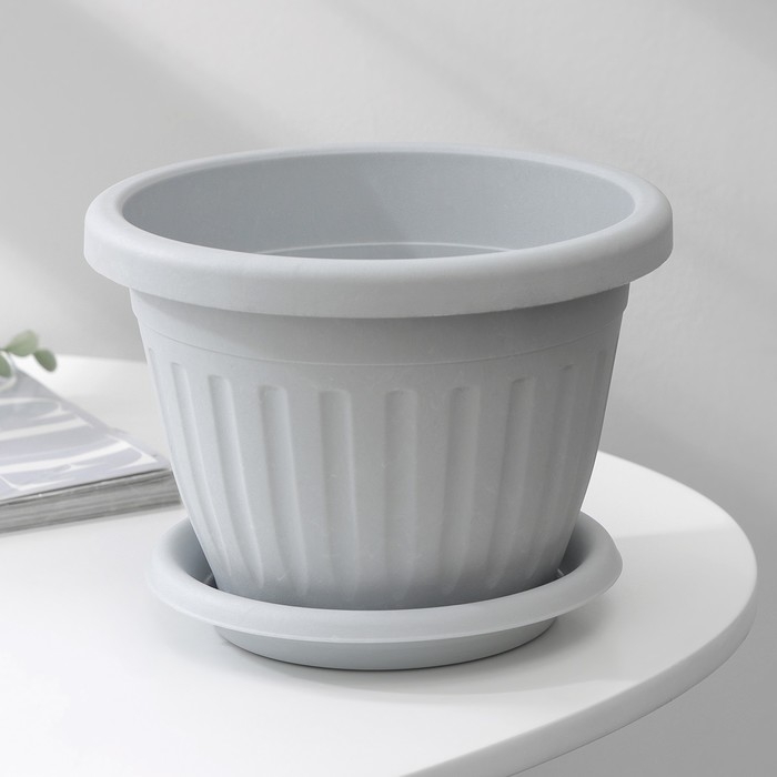 Горшок для цветов с поддоном «Сильвер ЭКО», 1.9 л, d=18 см, цвет светло-серый