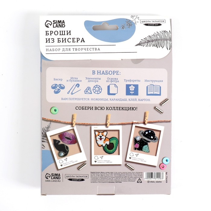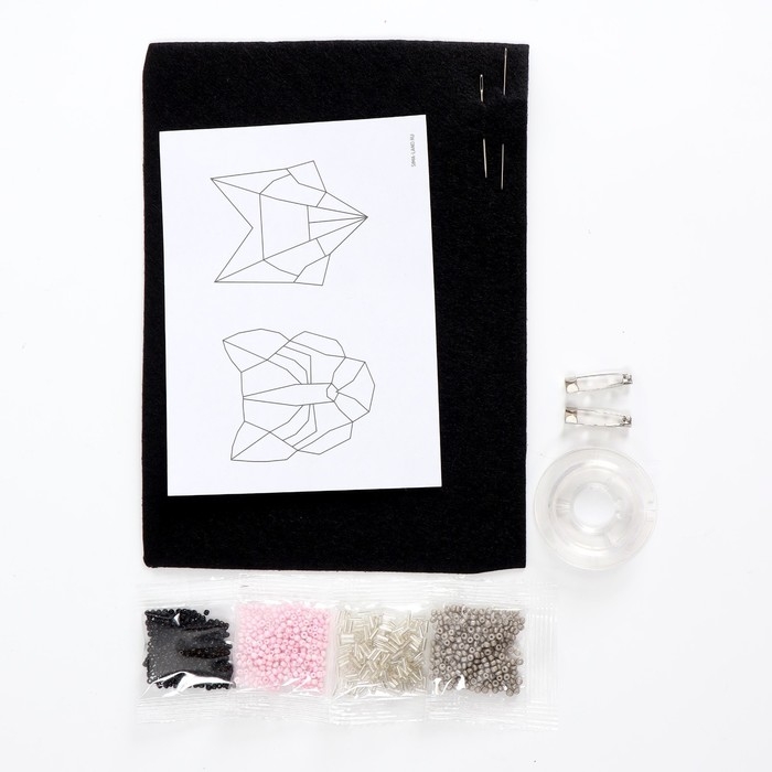 - Внутри вы найдёте основу, трафареты, инструменты и элементы декора для изготовления двух аксессуаров.