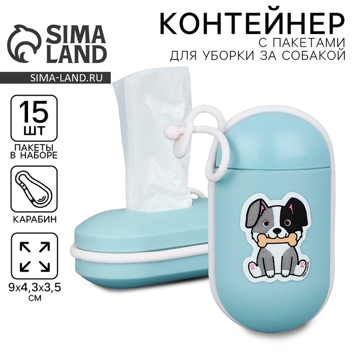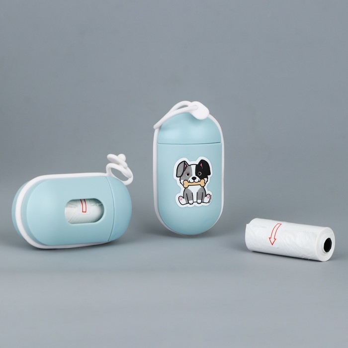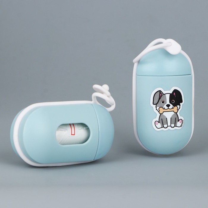 Контейнер с пакетами для уборки за собакой «На прогулке», цвет голубой