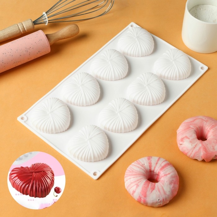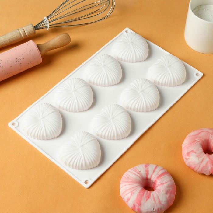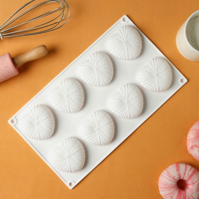 Форма для муссовых десертов и выпечки Доляна «Гипноз», силикон, 30×17,5×0,5 см, 6 ячеек (d=7,7 см), цвет белый