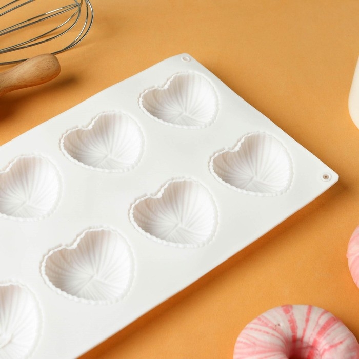 Форма для муссовых десертов и выпечки KONFINETTA «Вязаное сердце», силикон, 29,5×17×2 см, 8 ячеек (5,5×6,5×1,5 см), цвет белый