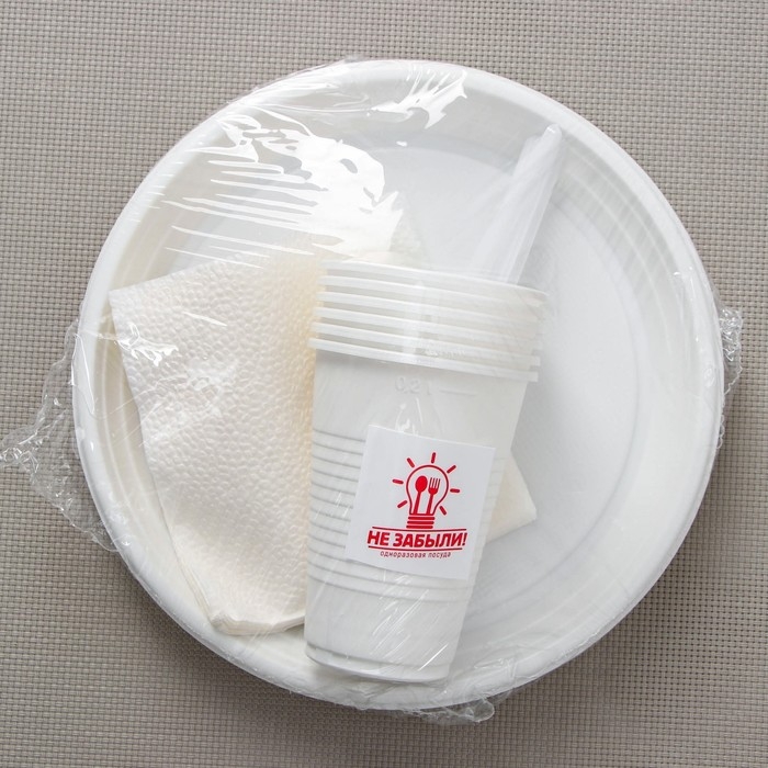 Набор пластиковой одноразовой посуды на 6 персон Не ЗАБЫЛИ! «Летний №1», цвет белый