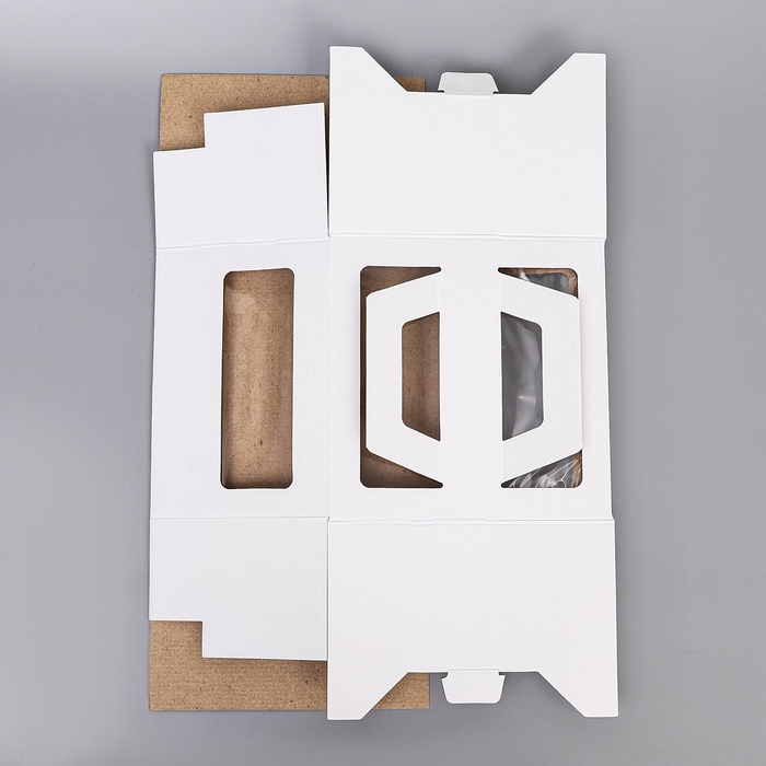 Коробка под торт 2 окна, с ручками, белая, Коробка для торта, десерта и выпечки. Кондитерская упаковка, упаковка для сладостей, пирожных, пирогов, подарочная коробка идеально подходит для переноса и перевозки тортов и десертов, кексов, пирожных. Прочная и удобная самосборная белая коробка для торта имеет 2 вклеенных окна. Конструкция легко собирается и надёжно защищает десерт внутри коробки. Смотрится красиво и празднично. Прекрасно украсит праздничный и сладкий стол на такие праздники как детский День Рождения, подарок любимой, свадьба, выпускной, девичник, мальчишник, юбилей и просто тематический вечер. С нашими коробками для выпечки и тортов вы сможете сделать незабываемый подарок на: день рождения, подарок любимой, пасха, 8 марта, 23 февраля, новый год. Хорошо подойдет пекарням, кондитерским магазинам и домашним кондитерам.