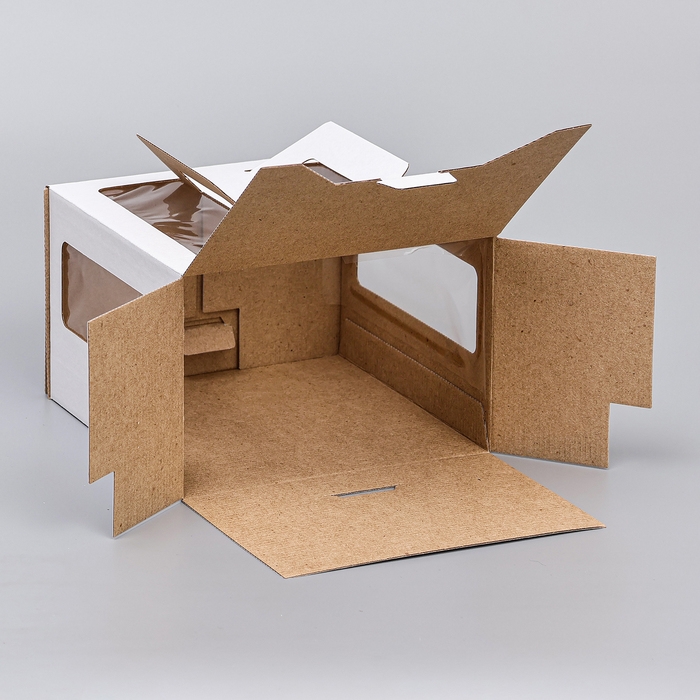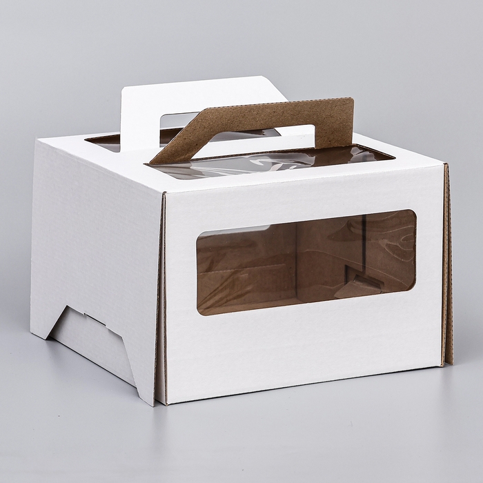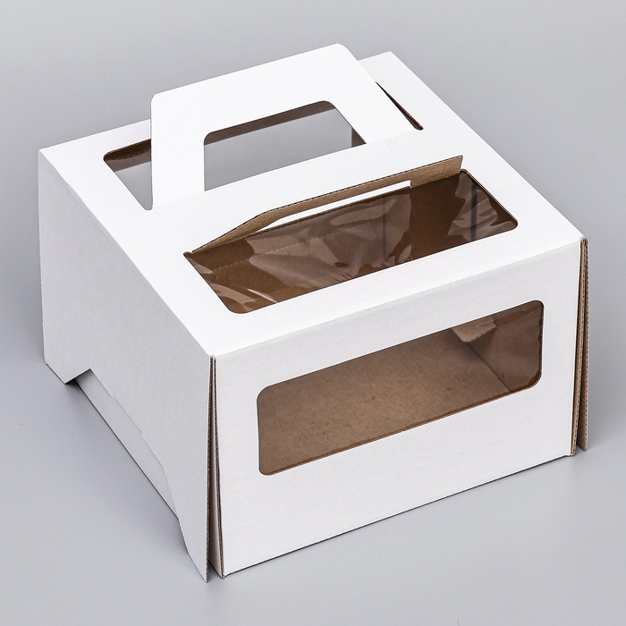 Коробка под торт 2 окна, с ручками, белая, 22 х 22 х 15 см