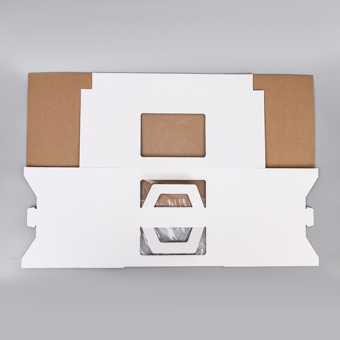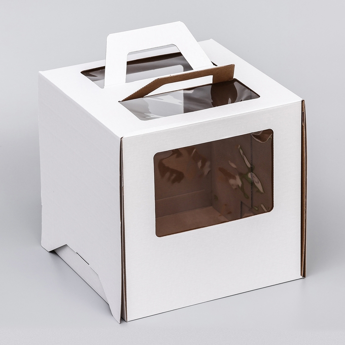 Коробка под торт 2 окна, с ручками, белая, 26 х 26 х 26 см