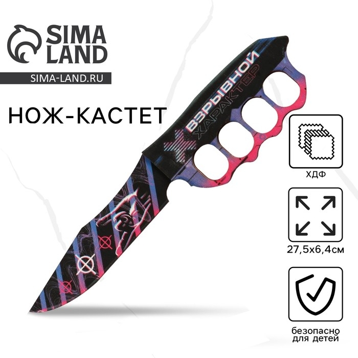 Деревянное оружие, детское сувенирное «Взрывной характер», нож кастет, 27,5 х 6,4 см - это яркое и безопасное оружие для детей!