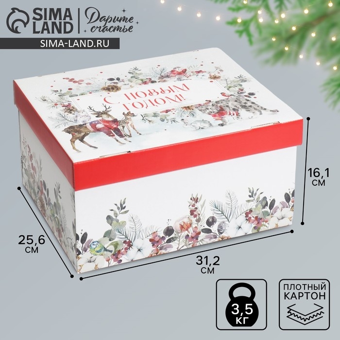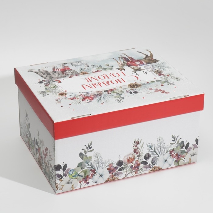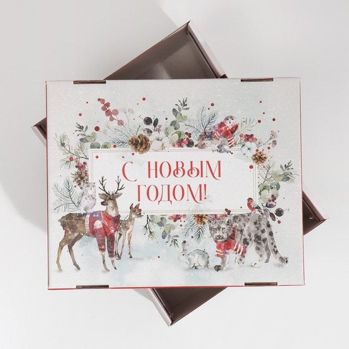 Коробка подарочная новогодняя складная «Новогодняя акварель», 31,2 х 25,6 х 16,1 см, Новый год