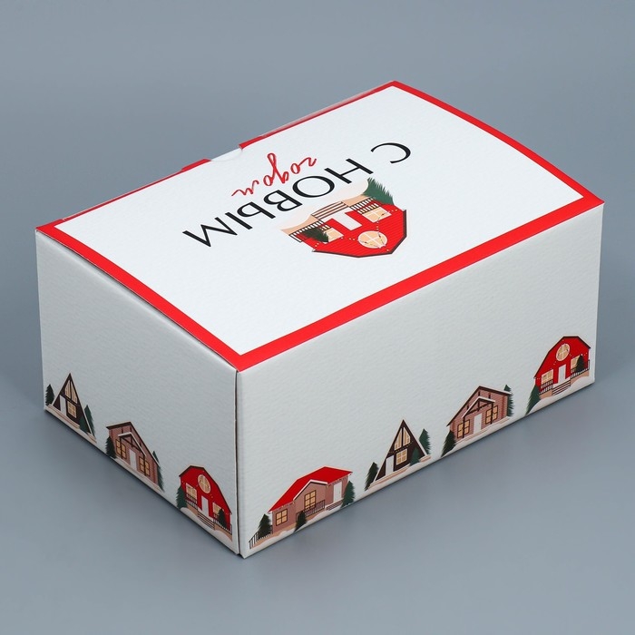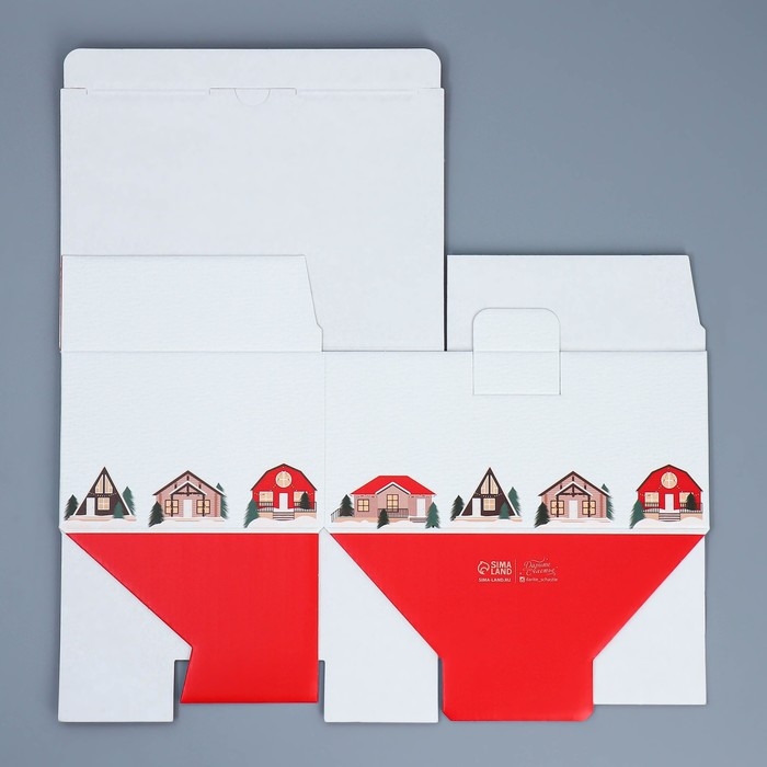 Коробка подарочная новогодняя складная «Домики», 22 х 15 х 10 см, Новый год