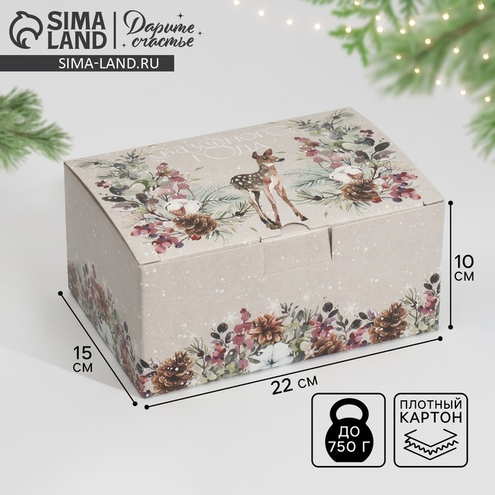 Коробка подарочная новогодняя складная «Новогодняя акварель», 22 х 15 х 10 см, Новый год