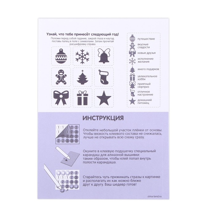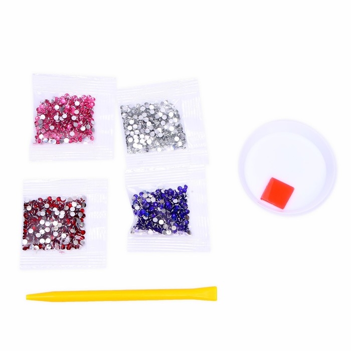 Чтобы получить сверкающую картинку, ребёнку предстоит разложить кристаллики специальным карандашом по схеме. Основа с клеевым покрытием будет надёжно удерживать стразы.