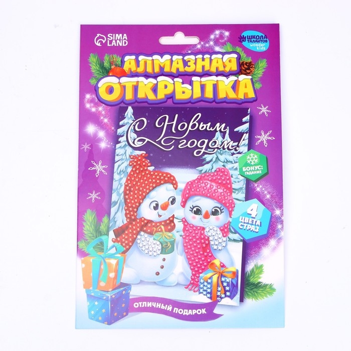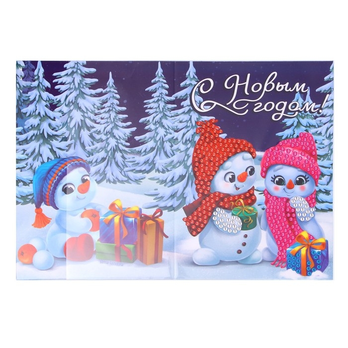 Алмазная мозаика на новый год с частичным заполнением для детей на открытке «Снеговики», новогодний набор для творчества