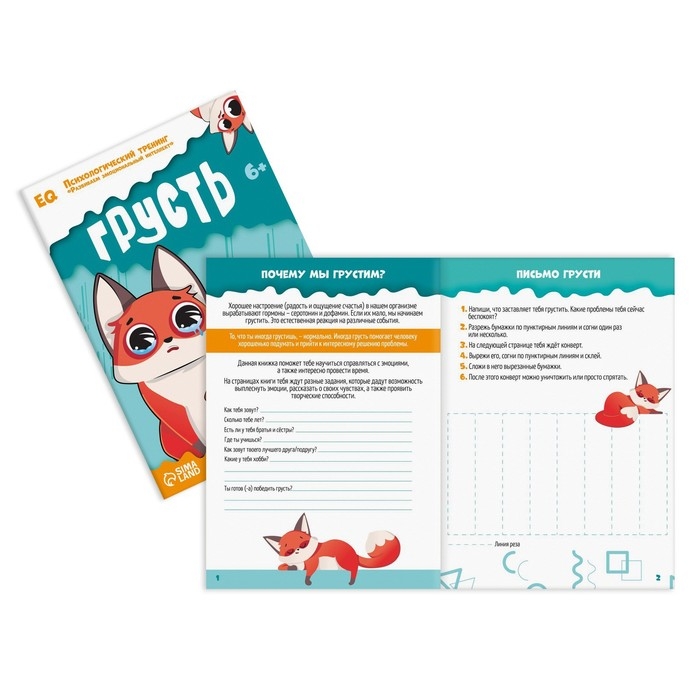 - «Грусть». Из книги дети узнают 19 действенных способов справиться с грустью. Ребята будут делать воронку для грусти, заполнять страничку настроения, заполнять чек-листы и даже составлять колесо жизненного баланса.