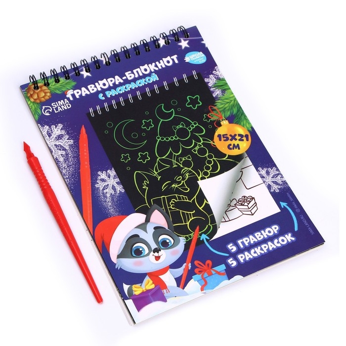 Блокнот гравюра - раскраска на новый год «С Новым годом», 10 листов