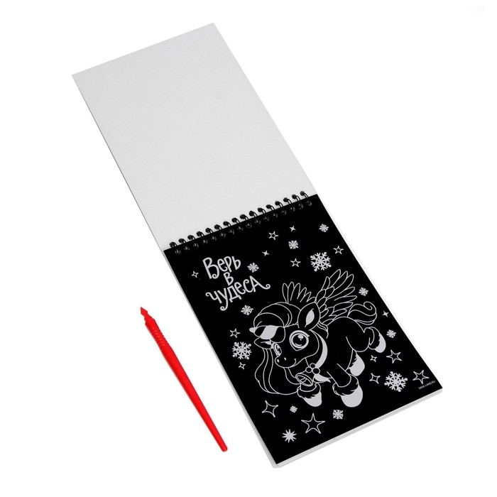 Гравюра блокнот детский «Принцесса и единорог», 10 листов, штихель, для девочки