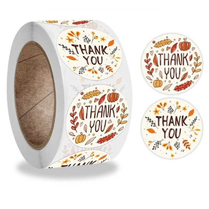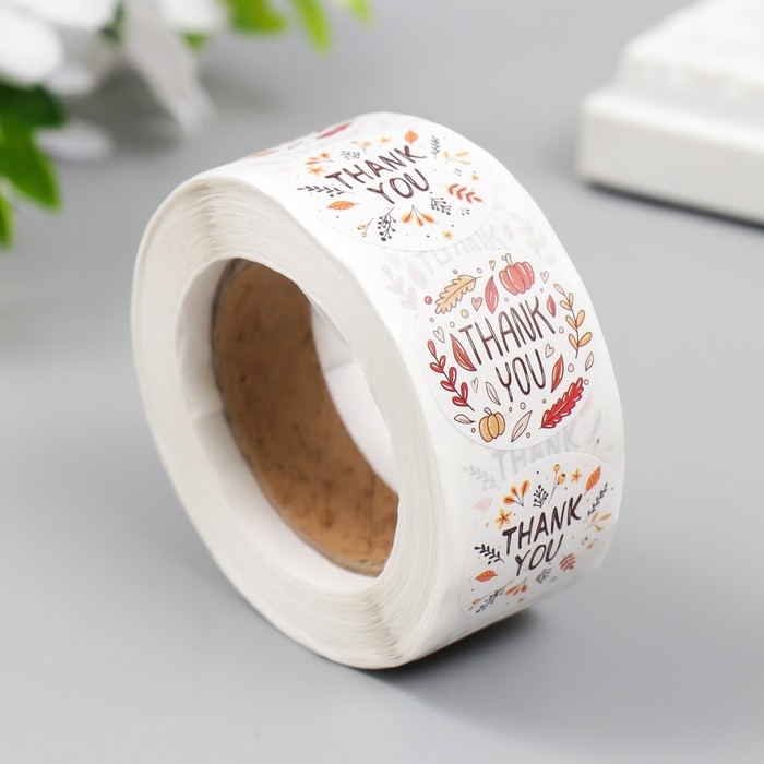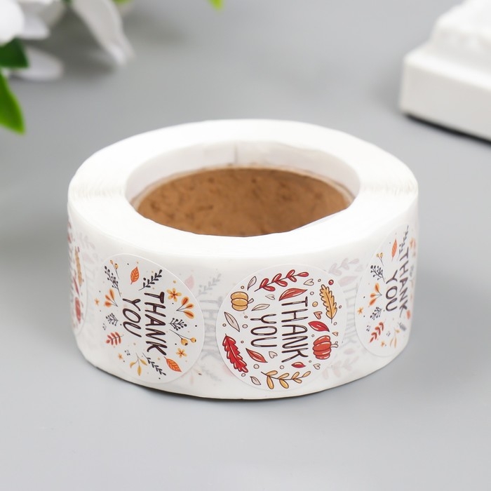 Наклейка бумага "Осень" d=2,5 см 500 шт в рулоне 3х6,5х6,5 см