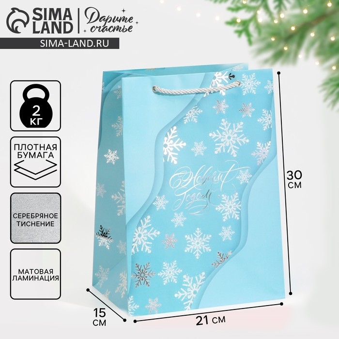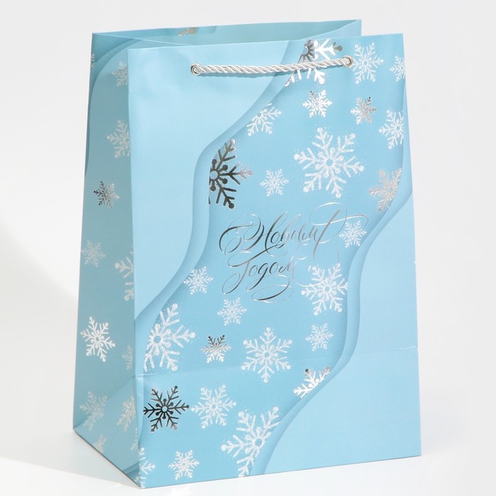 Пакет подарочный новогодний ламинированный «Лёд», 21 х 30 х 15 см, Новый год