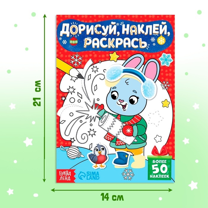 Книжка с наклейками «Дорисуй, наклей, раскрась. Зайчонок», 16 стр., 50 наклеек