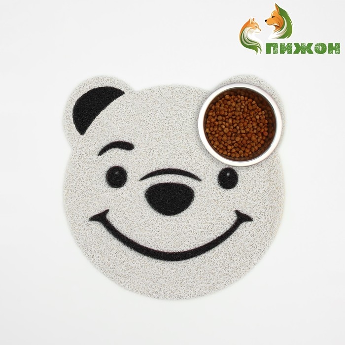 Коврик 2-в-1 под миску/туалет для животных "Мишка", 30 х 30 см, белый