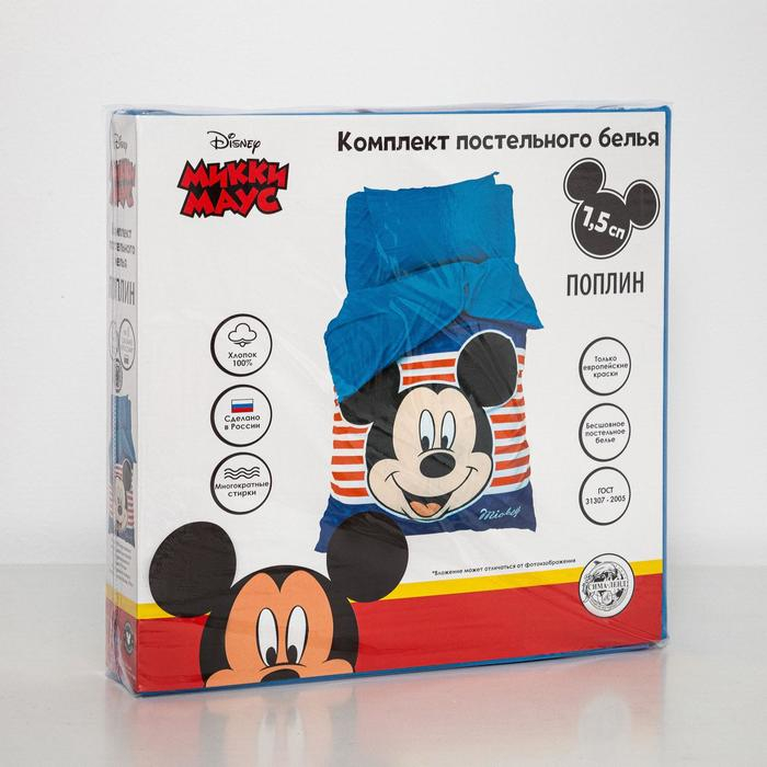 Постельное бельё 1,5 сп "Микки Маус" 143х215 см, 150х214 см, 50х70 см -1 шт., поплин 125 г/м2