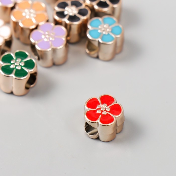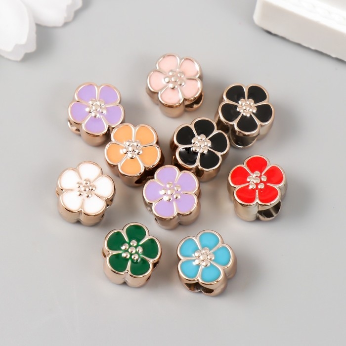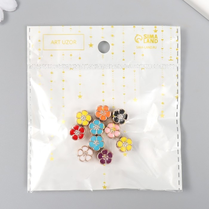 Бусины для творчества пластик "Цветок яркая серединка" МИКС набор 10 шт 1,1х1 см