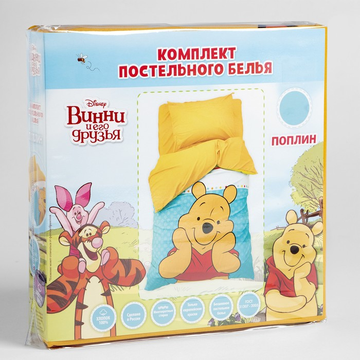 Постельное бельё 1,5 сп «Медвежонок Винни» 143х215 см, 150х214 см, 50х70 см -1 шт., поплин 125 г/м2