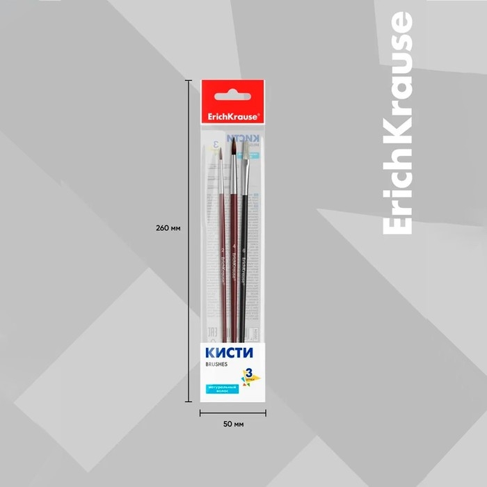 Набор кистей, синтетика, 3 штуки, ArtBerry для акварели и гуаши, еврослот