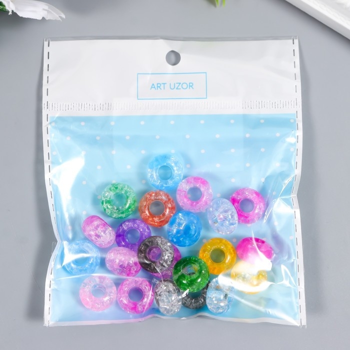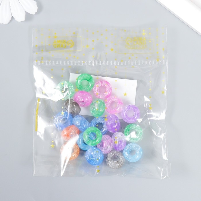 Бусины для творчества пластик "Колечки - битое стекло" набор 20 гр 0,9х1,4х1,4 см