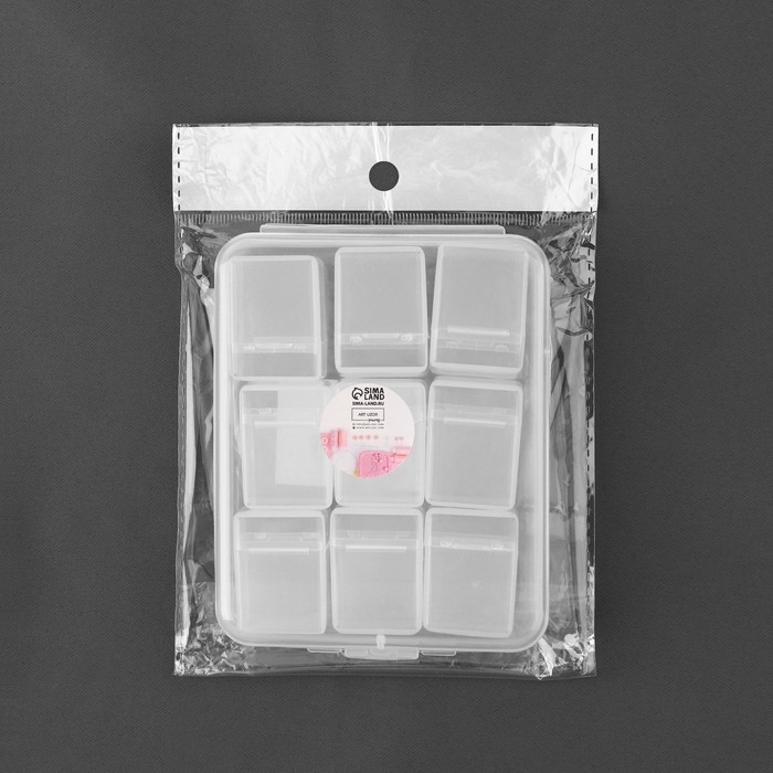 Набор контейнеров для хранения мелочей, 9 шт, 3,4 × 2,5 × 2,3 см, в контейнере, 11,5 × 9 × 2,7 см, цвет прозрачный