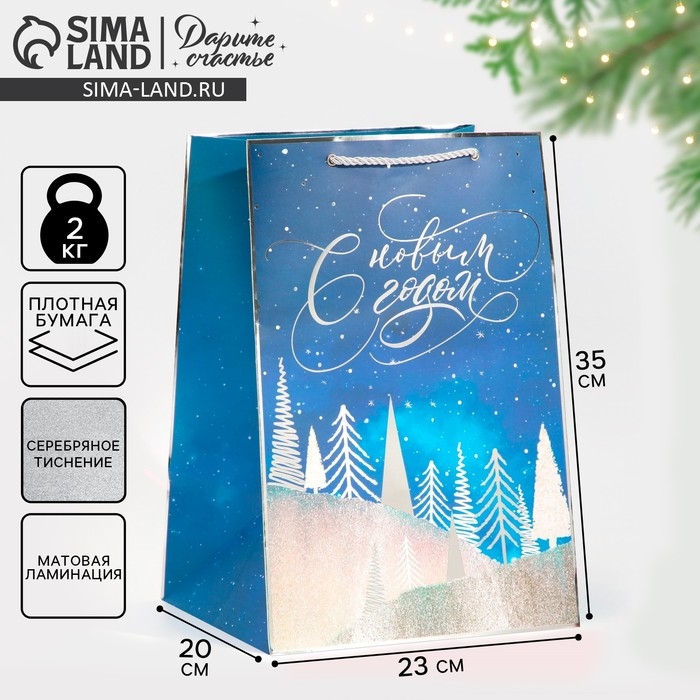 Пакет подарочный новогодний ламинированный «Зимний лес», 23 х 35 х 20 см, Новый год