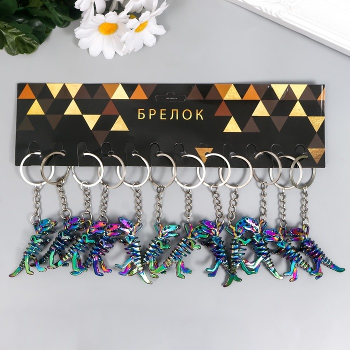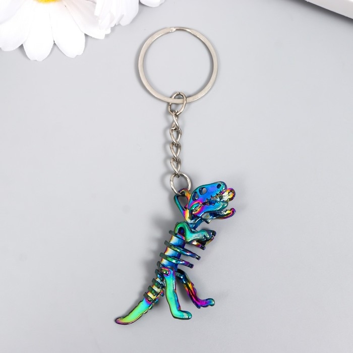 Брелок металл "Радужный скелет динозавра" 1,7х4,5х6 см