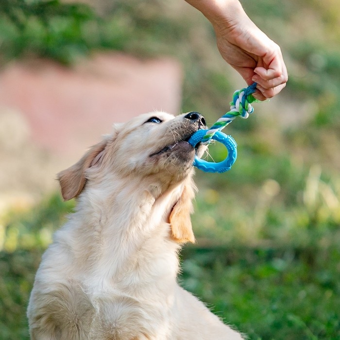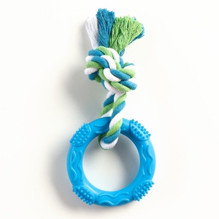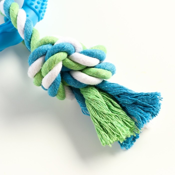 Игрушка жевательная с канатом "Кусочек солнца", 8 см, голубая