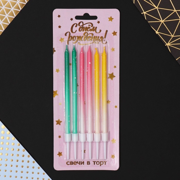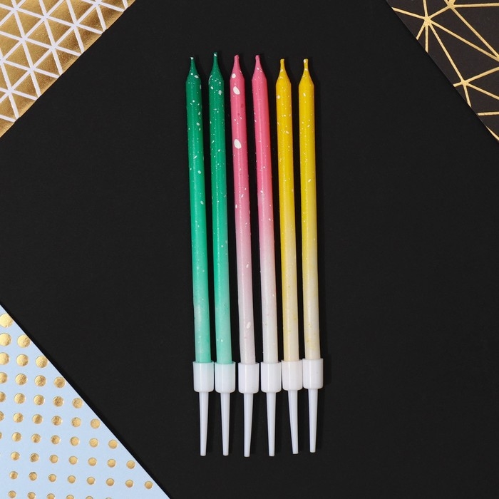 Свечи для торта с блестками, разноцветные, 6 шт., 13 х 0,4 см