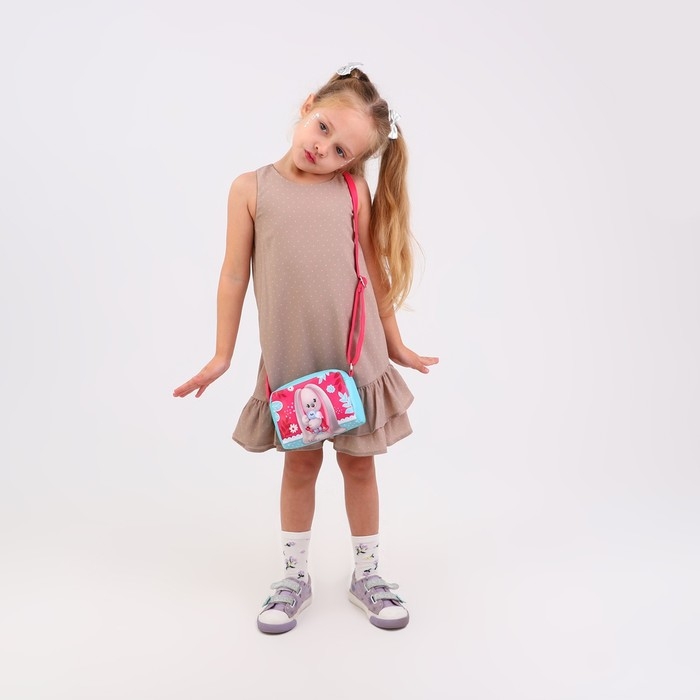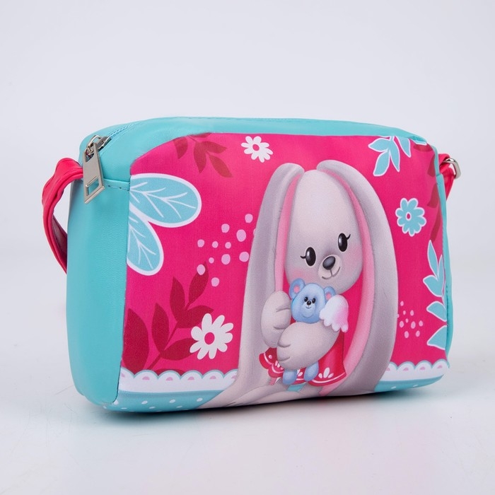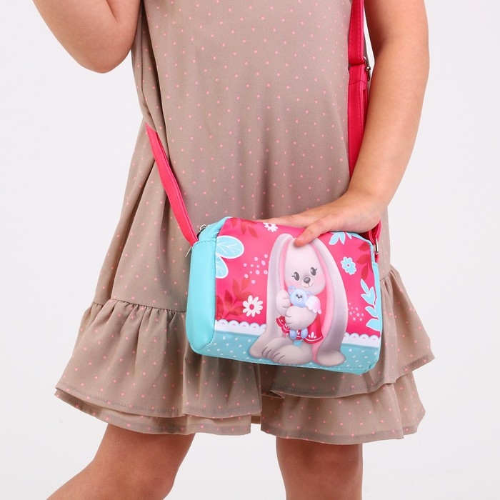 Сумка детская для девочки «Кролик с игрушкой» из эко-кожи, на ремешке, 15х12х3 см
