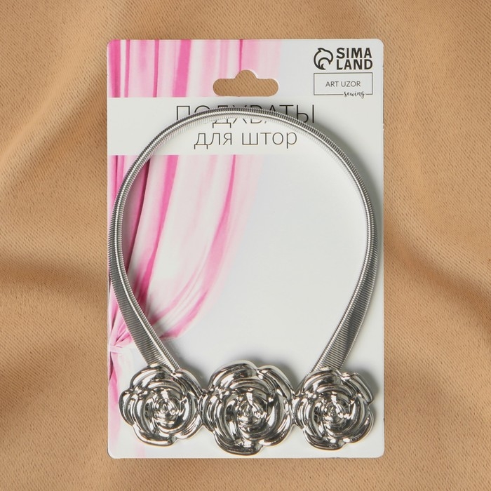 Подхват для штор «Розы», 8,7 × 3,5 см, 23,5 см, цвет серебряный