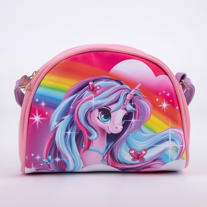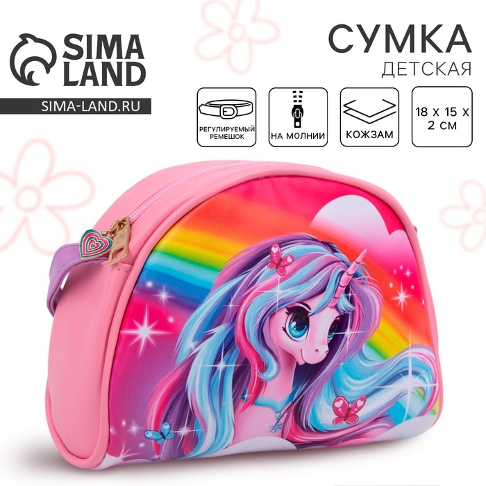 Сумка детская для девочки "Единорог на радуге", искусственная кожа, с брелком, 18х15х2 см