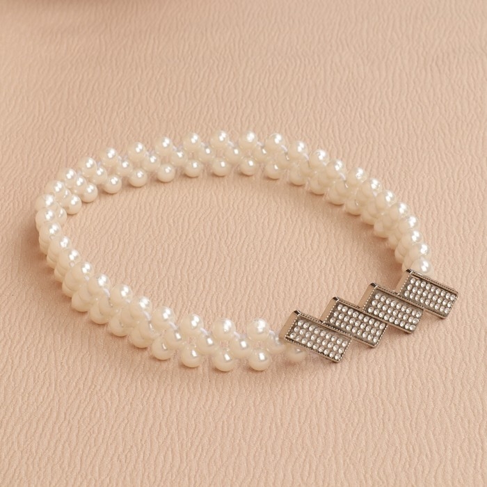 Подхват для штор «Геометрия», жемчуг на резинке, 2,2 × 7,5 см, 2 × 45 см, цвет белый